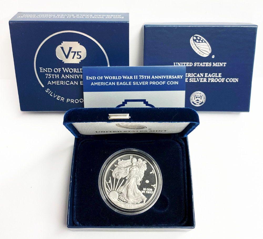 End Of World War Ii 75th Anniversary American Eagle Coins Released Coinnews from www.coinnews.net Corresponding end of world war ii package sleeve and certificate of authenticity are included. A symbolic v75 privy mark is stamped on the obverse of this american eagle silver proof coin. Today 11/5/20, at 12pm est, the 2020 v75 gold and silver proof eagles become available on the us mint's website. The silver proof has a limited mintage of 75,000 pieces and will be struck from 1 oz of.999 fine silver. Ngc special designations and labels for end of wwii 75th anniversary gold and silver eagles. I unbox the v75 proof silver eagle coin from the usmint. We will help you find the best prices for 2020 w american silver eagle ase v75 world war ii 75th when you're ready to buy. Get ready for two exciting united states mint releases on november 5: